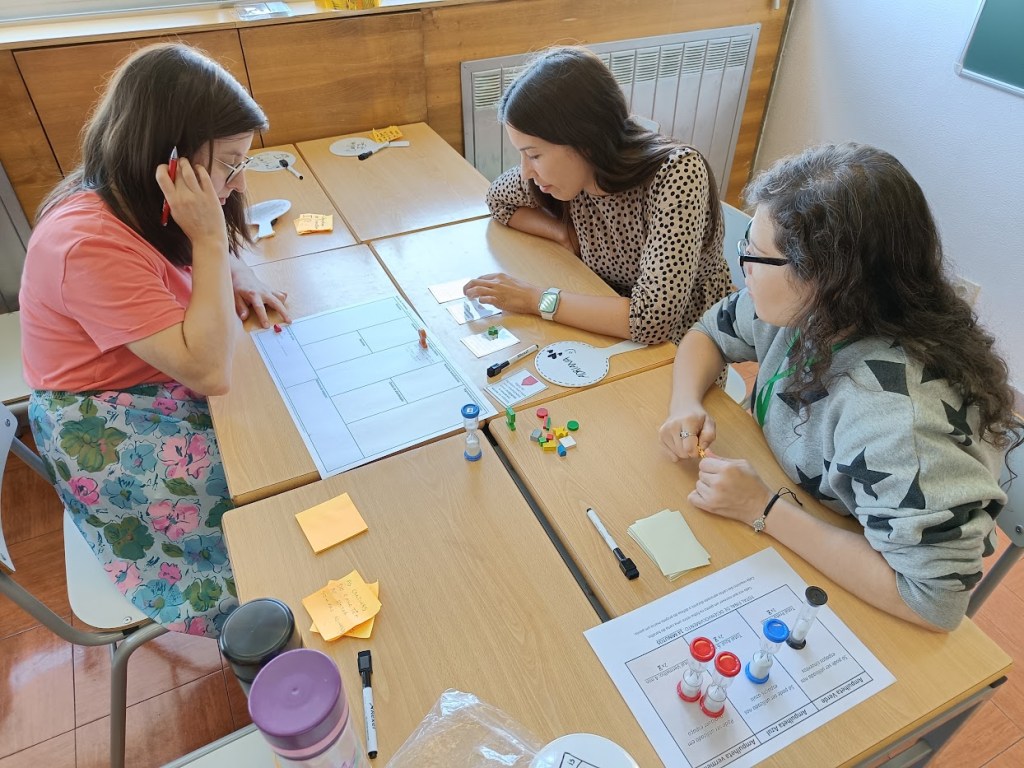 In a game, players can experiment and interact in engaging simulations to play different roles and overcome challenges that demand specific skills. Game-based learning and skill training can emerge by playing existing games or adapted games. Participants train and develop communication skills, brainstorming dynamics, collaboration processes, strategic decision-making, and project development techniques in playful environments. These methods apply and are adaptable to all users (e.g., are, social and cultural backgrounds) in formal institutions, schools, informal environments, institutions, companies, or projects.